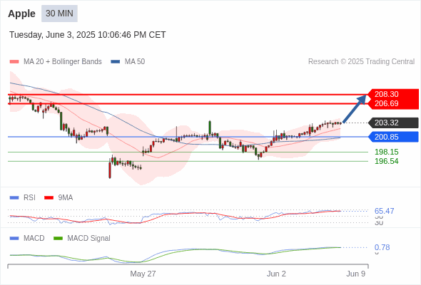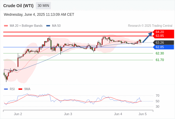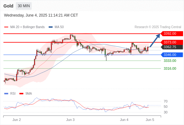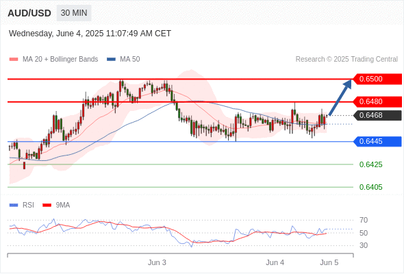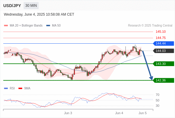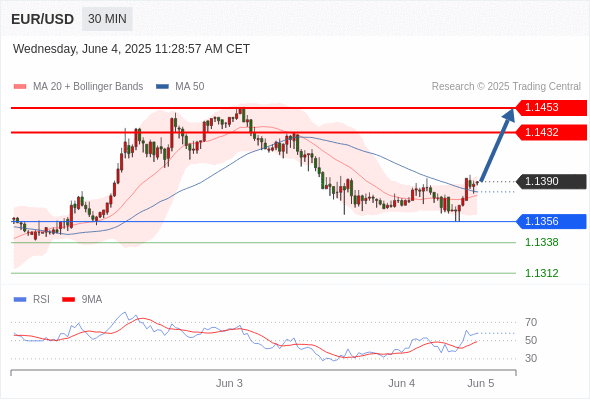 交易分析-6月4日(美盘前) 温馨提示:由于市场波动,价格可能已经越过关键点位,令策略失效。 欧元/美元 当日内: 反转向上。 转折点: 1.1356 交易策略: 在 1.1356 之上,看涨,目标价位为 1.1432 ,然后为 1.1453 。 备选策略: 在 1.1356 下,看空,目标价位定在 1.1336 ,然后为 1.1312。 技术点评: 1.1356附近形成了一个支撑的底部,将带来走势短期内的稳定。 美国原油 (WTI) 期货 (N5) 当日内: 看涨。 转折点: 62.85 交易策略: 在 62.85 之上,看涨,目标价位为 63.85 ,然后为 64.20 。 备选策略: 在 62.85 下,看空,目标价位定在 62.30 ,然后为 61.70。 技术点评: 随后的阻力位是63.85,然后为64.20。 黄金现货 当日内: 在3346.00之上,看涨。 转折点: 3346.00 交易策略: 在 3346.00 之上,看涨,目标价位为 3373.00 ,然后为 3392.00 。 备选策略: 在 3346.00 下,看空,目标价位定在 3333.00 ,然后为 3316.00。 技术点评: 即使我们不能排除持续调整的可能性,其时间长度上,应该是有限的。 美元/加元 当日内: 下跌趋势。 转折点: 1.3740 交易策略: 在 1.3740 之下,看跌,目标价位为 1.3672 ,然后为 1.3650 。 备选策略: 在 1.3740 上,看涨,目标价位定在 1.3760 ,然后为 1.3780。 技术点评: 只要依旧存在1.3740阻力位,期待回归至1.3672。 英镑/美元 当日内: 在1.3489之上,看涨。 转折点: 1.3489 交易策略: 在 1.3489 之上,看涨,目标价位为 1.3558 ,然后为 1.3586 。 备选策略: 在 1.3489 下,看空,目标价位定在 1.3470 ,然后为 1.3440。 技术点评: 随后的阻力位是1.3558,然后为1.3586。 美元/日元 当日内: 下跌趋势。 转折点: 144.44 交易策略: 在 144.44 之下,看跌,目标价位为 143.30 ,然后为 142.36 。 备选策略: 在 144.44 上,看涨,目标价位定在 144.75 ,然后为 145.10。 技术点评: 只要144.44阻力位不被突破,向下跌破143.30位置的风险很高。 澳元/美元 当日内: 期待上涨。 转折点: 0.6445 交易策略: 在 0.6445 之上,看涨,目标价位为 0.6480 ,然后为 0.6500 。 备选策略: 在 0.6445 下,看空,目标价位定在 0.6425 ,然后为 0.6405。 技术点评: 随后的阻力位是0.6480,然后为0.6500。 美国道琼斯指数期货 (M5) 当日内: 超短线(当日内)支撑位在42420.00附近。 转折点: 42420.00 交易策略: 在 42420.00 之上,看涨,目标价位为 42790.00 ,然后为 42880.00 。 备选策略: 在 42420.00 下,看空,目标价位定在 42270.00 ,然后为 42130.00。 技术点评: RSI技术指标在50%中性区域之上。 苹果 当日内 : 看涨,当 200.85 为支撑位。 转折点为: 200.85 交易策略: : 替代方案: 在200.85以下,期待198.15和196.54。 技术点评: RSI技术指标大于中性区域50。 MACD技术指标处在其信号线之上看多。 配置为正。 此外,价位高于其20天及50天移动平均线 ( 分别位于202.31 和200.68 )。 Admin|0 条评论 Share This Story, Choose Your Platform! FacebookXRedditLinkedInTumblrPinterestVk电邮 相关文章