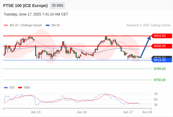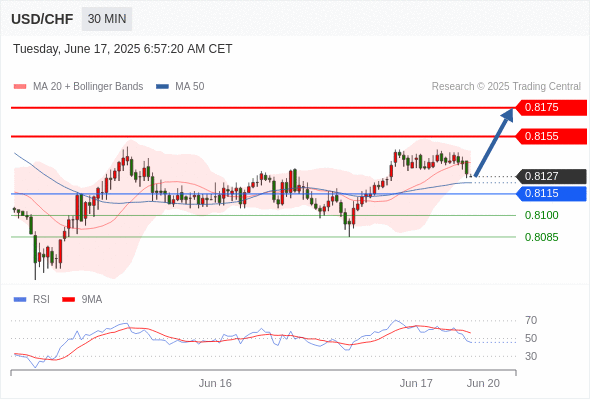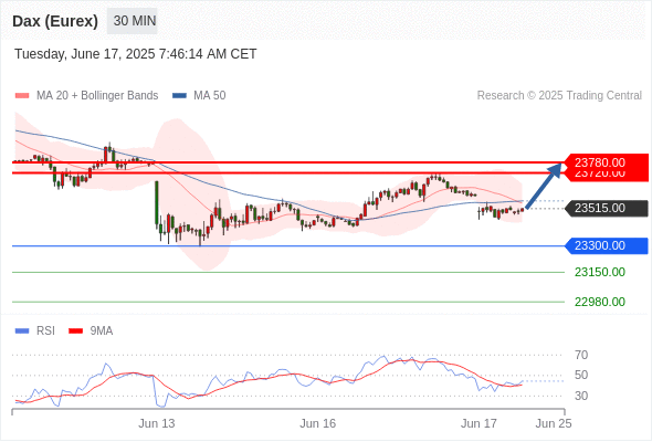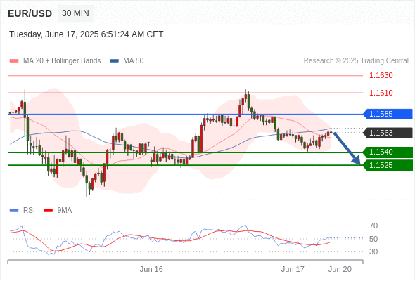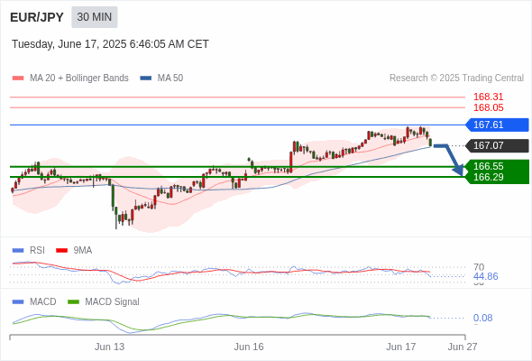 交易分析-6月17日(欧盘前) 温馨提示:由于市场波动,价格可能已经越过关键点位,令策略失效。 欧元/美元 当日内: 短期关键阻力位在1.1585。 转折点: 1.1585 交易策略: 在 1.1585 之下,看跌,目标价位为 1.1540 ,然后为 1.1525 。 备选策略: 在 1.1585 上,看涨,目标价位定在 1.1610 ,然后为 1.1630。 技术点评: 只要1.1585阻力位不被突破,向下跌破1.1540位置的风险很高。 黄金现货 当日内: 短期关键阻力位在3412.00。 转折点: 3412.00 交易策略: 在 3412.00 之下,看跌,目标价位为 3375.00 ,然后为 3360.00 。 备选策略: 在 3412.00 上,看涨,目标价位定在 3430.00 ,然后为 3450.00。 技术点评: RSI技术指标在50%中性区域附近。 英镑/美元 当日内: 期待1.3555。 转折点: 1.3600 交易策略: 在 1.3600 之下,看跌,目标价位为 1.3555 ,然后为 1.3540 。 备选策略: 在 1.3600 上,看涨,目标价位定在 1.3625 ,然后为 1.3650。 技术点评: 只要1.3600阻力位不被突破,向下跌破1.3555位置的风险很高。 欧元/日元 当日内 : 逐渐下跌,当 167.61 阻碍上行,则 166.29 为目标位。 转折点为: 167.61 交易策略: : 替代方案: 在167.61以上,查找168.05和168.31。 技术点评: RSI技术指标小于中性区域50。 MACD技术指标处在其信号线之下看多。 MACD必须突破其零线,才能预期出现进一步下行。 另外,价位低于其20天移动平均线 (167.32 ) 但高于其50天移动平均线 (167.04 )。 欧元/英镑 当日内 : 在进一步下跌之前,反弹至 0.8530 附近。 转折点为: 0.8530 交易策略: : 替代方案: 在0.8530以上,查找0.8545和0.8555。 技术点评: RSI技术指标大于中性区域50。 MACD技术指标处在其信号线之上看多。 配置为正。 另外,价位低于其50天移动平均线 (0.8518 ) 但高于其20天移动平均线 (0.8514 )。 美元/瑞郎 当日内: 调整。 转折点: 0.8115 交易策略: 在 0.8115 之上,看涨,目标价位为 0.8155 ,然后为 0.8175 。 备选策略: 在 0.8115 下,看空,目标价位定在 0.8100 ,然后为 0.8085。 技术点评: 0.8115附近形成了一个支撑的底部,将带来走势短期内的稳定。 德国DAX指数期货 (Eurex) (M5) 当日内: 没有明显变化趋势。 转折点: 23300.00 交易策略: 在 23300.00 之上,看涨,目标价位为 23720.00 ,然后为 23780.00 。 备选策略: 在 23300.00 下,看空,目标价位定在 23150.00 ,然后为 22980.00。 技术点评: RSI技术指标运行趋势复杂,倾向于上涨。 布伦特原油 (ICE) (Q5) 当日内: 上升。 转折点: 72.15 交易策略: 在 72.15 之上,看涨,目标价位为 75.40 ,然后为 76.65 。 备选策略: 在 72.15 下,看空,目标价位定在 70.50 ,然后为 69.25。 技术点评: RSI技术指标运行趋势复杂,倾向于上涨。 英国富时100指数期货 当日内: 超短线(当日内)支撑位在8819.00附近。 转折点: 8819.00 交易策略: 在 8819.00 之上,看涨,目标价位为 8868.00 ,然后为 8904.00 。 备选策略: 在 8819.00 下,看空,目标价位定在 8789.00 ,然后为 8750.00。 技术点评: RSI技术指标形态上看空,但却遇到较强支撑。 Admin|0 条评论 Share This Story, Choose Your Platform! FacebookXRedditLinkedInTumblrPinterestVk电邮 相关文章