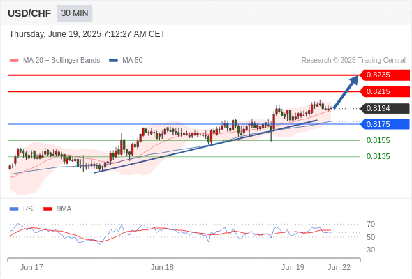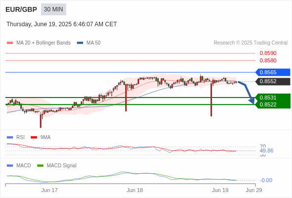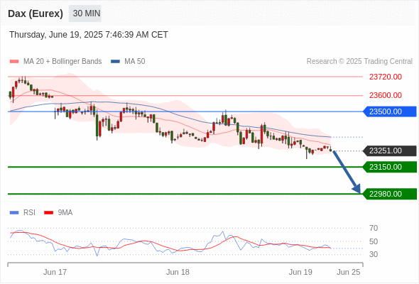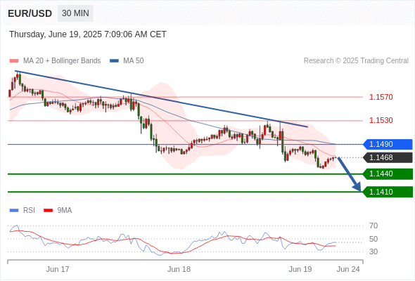 交易分析-6月19日(欧盘前) 温馨提示:由于市场波动,价格可能已经越过关键点位,令策略失效。 欧元/美元 当日内: 短期关键阻力位在1.1490。 转折点: 1.1490 交易策略: 在 1.1490 之下,看跌,目标价位为 1.1440 ,然后为 1.1410 。 备选策略: 在 1.1490 上,看涨,目标价位定在 1.1530 ,然后为 1.1570。 技术点评: 只要1.1490阻力位不被突破,向下跌破1.1440位置的风险很高。 黄金现货 当日内: 短期关键阻力位在3388.00。 转折点: 3388.00 交易策略: 在 3388.00 之下,看跌,目标价位为 3360.00 ,然后为 3345.00 。 备选策略: 在 3388.00 上,看涨,目标价位定在 3400.00 ,然后为 3410.00。 技术点评: RSI技术指标刚达到50%中性区域,并向下反转。 英镑/美元 当日内: 期待1.3375。 转折点: 1.3440 交易策略: 在 1.3440 之下,看跌,目标价位为 1.3375 ,然后为 1.3345 。 备选策略: 在 1.3440 上,看涨,目标价位定在 1.3465 ,然后为 1.3495。 技术点评: 只要依旧存在1.3440阻力位,价格波动存在看跌的趋势。 欧元/日元 当日内 : 有上涨的可能,目标价位定在 167.13 。 转折点为: 165.94 交易策略: : 替代方案: 在165.94以下,期待165.50和165.24。 技术点评: RSI技术指标小于中性区域50。 MACD技术指标处在其信号线之上看空。 混合配置。 此外,价位低于其20天及50天移动平均线 ( 分别位于166.40 和166.56 )。 欧元/英镑 当日内 : 看跌,在 0.8565 之下。 转折点为: 0.8565 交易策略: : 替代方案: 在0.8565以上,查找0.8580和0.8590。 技术点评: RSI技术指标小于中性区域50。 MACD技术指标处在其信号线之下看空。 配置为负。 此外,价位低于其20天及50天移动平均线 ( 分别位于0.8553 和0.8553 )。 美元/瑞郎 当日内: 被上升趋势线支撑。 转折点: 0.8175 交易策略: 在 0.8175 之上,看涨,目标价位为 0.8215 ,然后为 0.8235 。 备选策略: 在 0.8175 下,看空,目标价位定在 0.8155 ,然后为 0.8135。 技术点评: 0.8175附近形成了一个支撑的底部,将带来走势短期内的稳定。 德国DAX指数期货 (Eurex) (M5) 当日内: 谨慎操作。 转折点: 23500.00 交易策略: 在 23500.00 之下,看跌,目标价位为 23150.00 ,然后为 22980.00 。 备选策略: 在 23500.00 上,看涨,目标价位定在 23600.00 ,然后为 23720.00。 技术点评: RSI技术指标运行趋势复杂,倾向于下降。 布伦特原油 (ICE) (Q5) 当日内: 超短线(当日内)支撑位在74.80附近。 转折点: 74.80 交易策略: 在 74.80 之上,看涨,目标价位为 77.40 ,然后为 78.50 。 备选策略: 在 74.80 下,看空,目标价位定在 73.70 ,然后为 72.70。 技术点评: RSI技术指标缺乏下降动能 英国富时100指数期货 当日内: 箱体震荡。 转折点: 8806.00 交易策略: 在 8806.00 之上,看涨,目标价位为 8868.00 ,然后为 8904.00 。 备选策略: 在 8806.00 下,看空,目标价位定在 8789.00 ,然后为 8750.00。 技术点评: RSI技术指标运行趋势复杂。 Admin|0 条评论 Share This Story, Choose Your Platform! FacebookXRedditLinkedInTumblrPinterestVk电邮 相关文章