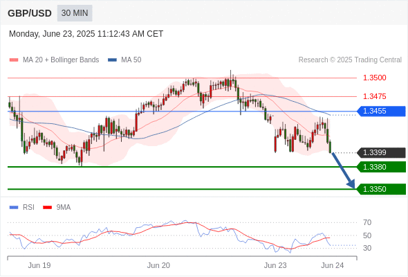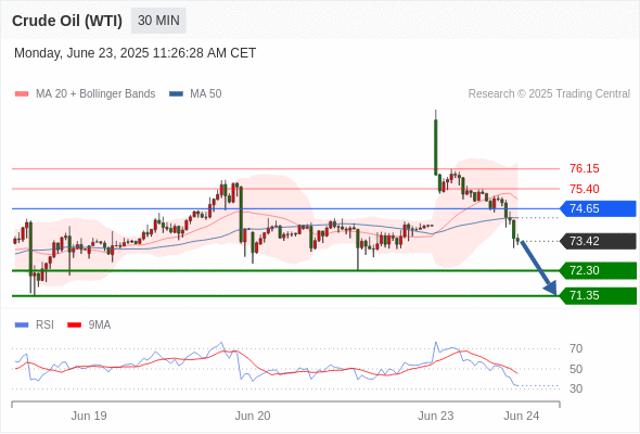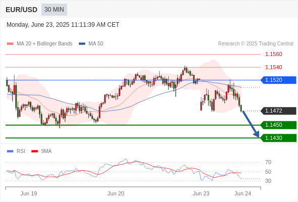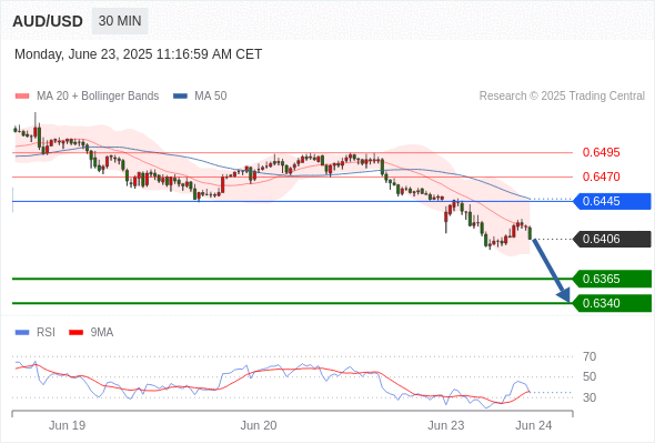 交易分析-6月23日(美盘前) 温馨提示:由于市场波动,价格可能已经越过关键点位,令策略失效。 欧元/美元 当日内: 短期调整。 转折点: 1.1520 交易策略: 在 1.1520 之下,看跌,目标价位为 1.1450 ,然后为 1.1430 。 备选策略: 在 1.1520 上,看涨,目标价位定在 1.1540 ,然后为 1.1560。 技术点评: 只要依旧存在1.1520阻力位,价格波动存在看跌的趋势。 美国原油 (WTI) 期货 (Q5) 当日内: 存在压力。 转折点: 74.65 交易策略: 在 74.65 之下,看跌,目标价位为 72.30 ,然后为 71.35 。 备选策略: 在 74.65 上,看涨,目标价位定在 75.40 ,然后为 76.15。 技术点评: 只要依旧存在74.65阻力位,价格波动存在看跌的趋势。 美元/日元 当日内: 进一步上涨。 转折点: 146.90 交易策略: 在 146.90 之上,看涨,目标价位为 148.20 ,然后为 148.70 。 备选策略: 在 146.90 下,看空,目标价位定在 146.40 ,然后为 145.90。 技术点评: 其即时趋势维持向上,有较强的动能。 黄金现货 当日内: 存在压力。 转折点: 3374.00 交易策略: 在 3374.00 之下,看跌,目标价位为 3340.00 ,然后为 3330.00 。 备选策略: 在 3374.00 上,看涨,目标价位定在 3388.00 ,然后为 3400.00。 技术点评: 只要依旧存在3374.00阻力位,价格波动存在看跌的趋势。 英镑/美元 当日内: 存在压力。 转折点: 1.3455 交易策略: 在 1.3455 之下,看跌,目标价位为 1.3380 ,然后为 1.3350 。 备选策略: 在 1.3455 上,看涨,目标价位定在 1.3475 ,然后为 1.3500。 技术点评: 只要1.3455阻力位不被突破,向下跌破1.3380位置的风险很高。 美元/加元 当日内: 进一步上涨。 转折点: 1.3735 交易策略: 在 1.3735 之上,看涨,目标价位为 1.3800 ,然后为 1.3825 。 备选策略: 在 1.3735 下,看空,目标价位定在 1.3720 ,然后为 1.3690。 技术点评: RSI技术指标看涨,有进一步上升空间。 澳元/美元 当日内: 存在压力。 转折点: 0.6445 交易策略: 在 0.6445 之下,看跌,目标价位为 0.6365 ,然后为 0.6340 。 备选策略: 在 0.6445 上,看涨,目标价位定在 0.6470 ,然后为 0.6495。 技术点评: 跌破0.6445,为空头信号,向下的目标将会是0.6365。 美国道琼斯指数期货 (U5) 当日内: 超短线(当日内)支撑位在42320.00附近。 转折点: 42320.00 交易策略: 在 42320.00 之上,看涨,目标价位为 42720.00 ,然后为 42830.00 。 备选策略: 在 42320.00 下,看空,目标价位定在 42205.00 ,然后为 42100.00。 技术点评: RSI技术指标运行趋势复杂,倾向于上升。 苹果 当日内 : 看涨,当 198.30 为支撑位。 转折点为: 198.30 交易策略: : 替代方案: 在198.30以下,期待196.39和195.26。 技术点评: RSI技术指标大于中性区域50。 MACD技术指标处在其信号线之上看多。 配置为正。 此外,价位高于其20天及50天移动平均线 ( 分别位于197.95 和197.47 )。 Admin|0 条评论 Share This Story, Choose Your Platform! FacebookXRedditLinkedInTumblrPinterestVk电邮 相关文章