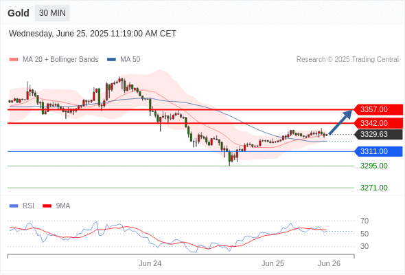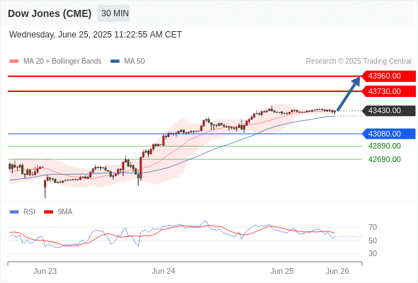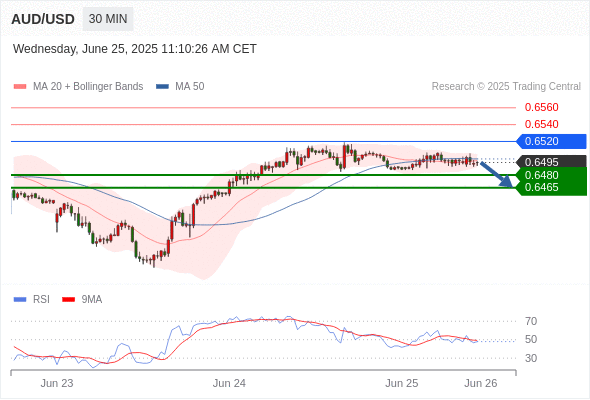 交易分析-6月25日(美盘前) 温馨提示:由于市场波动,价格可能已经越过关键点位,令策略失效。 欧元/美元 当日内: 超短线(当日内)支撑位在1.1585附近。 转折点: 1.1585 交易策略: 在 1.1585 之上,看涨,目标价位为 1.1635 ,然后为 1.1660 。 备选策略: 在 1.1585 下,看空,目标价位定在 1.1560 ,然后为 1.1540。 技术点评: 1.1585附近形成了一个支撑的底部,将带来走势短期内的稳定。 美国原油 (WTI) 期货 (Q5) 当日内: 短期调整。 转折点: 67.10 交易策略: 在 67.10 之下,看跌,目标价位为 64.05 ,然后为 62.75 。 备选策略: 在 67.10 上,看涨,目标价位定在 68.90 ,然后为 70.20。 技术点评: 只要依旧存在67.10阻力位,价格波动存在看跌的趋势。 黄金现货 当日内: 持续上升。 转折点: 3311.00 交易策略: 在 3311.00 之上,看涨,目标价位为 3342.00 ,然后为 3357.00 。 备选策略: 在 3311.00 下,看空,目标价位定在 3295.00 ,然后为 3271.00。 技术点评: RSI技术指标看涨,有进一步上升空间。 美元/加元 当日内: 持续上升。 转折点: 1.3700 交易策略: 在 1.3700 之上,看涨,目标价位为 1.3750 ,然后为 1.3775 。 备选策略: 在 1.3700 下,看空,目标价位定在 1.3680 ,然后为 1.3660。 技术点评: RSI技术指标看涨,有进一步上升空间。 澳元/美元 当日内: 存在压力。 转折点: 0.6520 交易策略: 在 0.6520 之下,看跌,目标价位为 0.6480 ,然后为 0.6465 。 备选策略: 在 0.6520 上,看涨,目标价位定在 0.6540 ,然后为 0.6560。 技术点评: 只要0.6520阻力位不被突破,向下跌破0.6480位置的风险很高。 英镑/美元 当日内: 在1.3580之上,看涨。 转折点: 1.3580 交易策略: 在 1.3580 之上,看涨,目标价位为 1.3640 ,然后为 1.3670 。 备选策略: 在 1.3580 下,看空,目标价位定在 1.3545 ,然后为 1.3510。 技术点评: 1.3580附近形成了一个支撑的底部,将带来走势短期内的稳定。 美元/日元 当日内: 反弹向上。 转折点: 144.90 交易策略: 在 144.90 之上,看涨,目标价位为 146.15 ,然后为 146.55 。 备选策略: 在 144.90 下,看空,目标价位定在 144.50 ,然后为 144.10。 技术点评: RSI技术指标上,呈现上升趋势。 美国道琼斯指数期货 (U5) 当日内: 目标位为43730.00。 转折点: 43080.00 交易策略: 在 43080.00 之上,看涨,目标价位为 43730.00 ,然后为 43960.00 。 备选策略: 在 43080.00 下,看空,目标价位定在 42890.00 ,然后为 42690.00。 技术点评: 随后的阻力位是43730.00,然后为43960.00。 苹果 当日内 : 逐渐下跌,当 202.96 阻碍上行,则 197.19 为目标位。 转折点为: 202.96 交易策略: : 替代方案: 在202.96以上,查找204.69和205.73。 技术点评: RSI技术指标小于中性区域50。 MACD技术指标处在其信号线之下看多。 MACD必须突破其零线,才能预期出现进一步下行。 另外,价位低于其20天移动平均线 (201.40 ) 但高于其50天移动平均线 (199.58 )。 Admin|0 条评论 Share This Story, Choose Your Platform! FacebookXRedditLinkedInTumblrPinterestVk电邮 相关文章