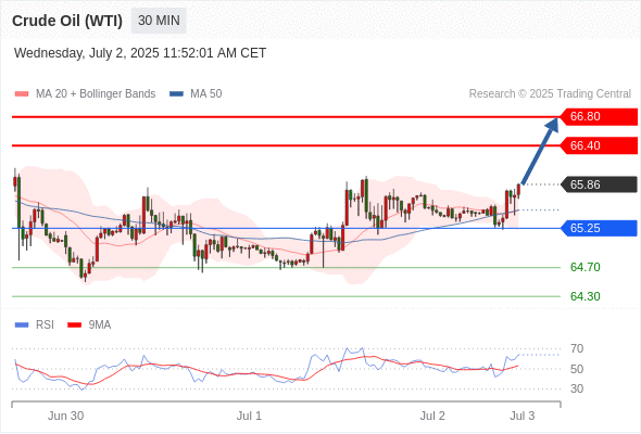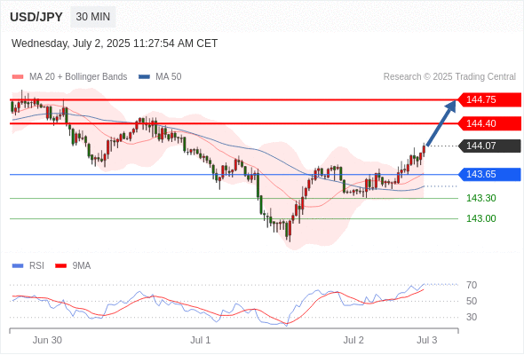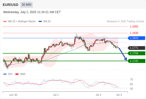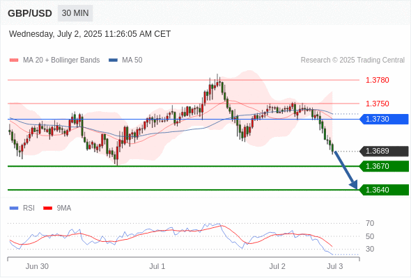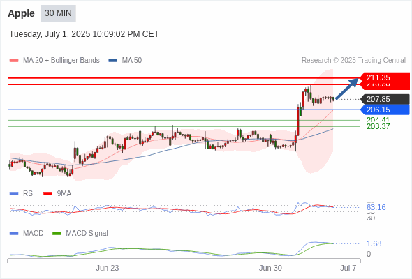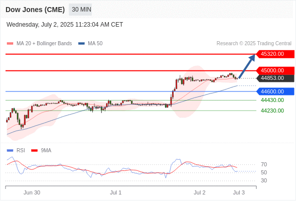 交易分析-7月2日(美盘前) 温馨提示:由于市场波动,价格可能已经越过关键点位,令策略失效。 欧元/美元 当日内: 调整。 转折点: 1.1810 交易策略: 在 1.1810 之下,看跌,目标价位为 1.1750 ,然后为 1.1720 。 备选策略: 在 1.1810 上,看涨,目标价位定在 1.1830 ,然后为 1.1855。 技术点评: 只要1.1810阻力位不被突破,向下跌破1.1750位置的风险很高。 美国原油 (WTI) 期货 (Q5) 当日内: 超短线(当日内)支撑位在65.25附近。 转折点: 65.25 交易策略: 在 65.25 之上,看涨,目标价位为 66.40 ,然后为 66.80 。 备选策略: 在 65.25 下,看空,目标价位定在 64.70 ,然后为 64.30。 技术点评: RSI技术指标看涨,有进一步上升空间。 黄金现货 当日内: 存在压力。 转折点: 3345.00 交易策略: 在 3345.00 之下,看跌,目标价位为 3320.00 ,然后为 3309.00 。 备选策略: 在 3345.00 上,看涨,目标价位定在 3357.00 ,然后为 3365.00。 技术点评: 只要依旧存在3345.00阻力位,价格波动存在看跌的趋势。 澳元/美元 当日内: 调整。 转折点: 0.6585 交易策略: 在 0.6585 之下,看跌,目标价位为 0.6550 ,然后为 0.6525 。 备选策略: 在 0.6585 上,看涨,目标价位定在 0.6600 ,然后为 0.6620。 技术点评: 只要依旧存在0.6585阻力位,价格波动存在看跌的趋势。 英镑/美元 当日内: 下跌趋势。 转折点: 1.3730 交易策略: 在 1.3730 之下,看跌,目标价位为 1.3670 ,然后为 1.3640 。 备选策略: 在 1.3730 上,看涨,目标价位定在 1.3750 ,然后为 1.3780。 技术点评: RSI技术指标看跌,有进一步向下趋势。 美元/日元 当日内: 进一步上涨。 转折点: 143.65 交易策略: 在 143.65 之上,看涨,目标价位为 144.40 ,然后为 144.75 。 备选策略: 在 143.65 下,看空,目标价位定在 143.30 ,然后为 143.00。 技术点评: RSI技术指标看涨,有进一步上升空间。 美元/加元 当日内: 超短线(当日内)支撑位在1.3620附近。 转折点: 1.3620 交易策略: 在 1.3620 之上,看涨,目标价位为 1.3670 ,然后为 1.3695 。 备选策略: 在 1.3620 下,看空,目标价位定在 1.3590 ,然后为 1.3570。 技术点评: RSI技术指标看涨,有进一步上升空间。 美国道琼斯指数期货 (U5) 当日内: 在44600.00之上,看涨。 转折点: 44600.00 交易策略: 在 44600.00 之上,看涨,目标价位为 45000.00 ,然后为 45320.00 。 备选策略: 在 44600.00 下,看空,目标价位定在 44430.00 ,然后为 44230.00。 技术点评: 随后的阻力位是45000.00,然后为45320.00。 苹果 当日内 : 看涨,当 206.15 为支撑位,目标定在211.35。 转折点为: 206.15 交易策略: : 替代方案: 在206.15以下,期待204.41和203.37。 技术点评: RSI技术指标大于中性区域50。 MACD技术指标处在其信号线之下看多。 价格可能会回撤。 此外,价位高于其20天及50天移动平均线 ( 分别位于206.06 和203.00 )。 Admin|0 条评论 Share This Story, Choose Your Platform! FacebookXRedditLinkedInTumblrPinterestVk电邮 相关文章
